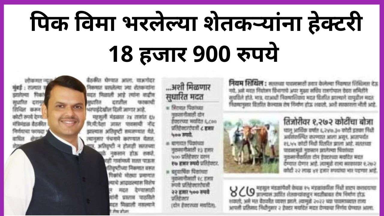 सध्या काही प्रसार माध्यमांमध्ये अशी माहिती चर्चेत आहे की पीक विमा भरलेल्या शेतकऱ्यांना “प्रति हेक्टर ₹ १८,९००” पर्यंत भरपाई मिळू शकते, मात्र हे एक निश्चित, सार्वत्रिक पॅकेज किंवा ठरलेली रक्कम नाही — याची पाहणी अगदी काळजीपूर्वक करायला हवी. 🌾 हेक्टरी ₹ १८,९०० म्हणजे काय? 🔹 काही पीक विमा दस्तऐवजांमध्ये ‘विमा संरक्षित रक्कम’ (Sum Insured) म्हणून … Read more